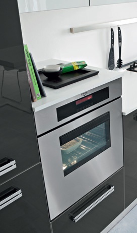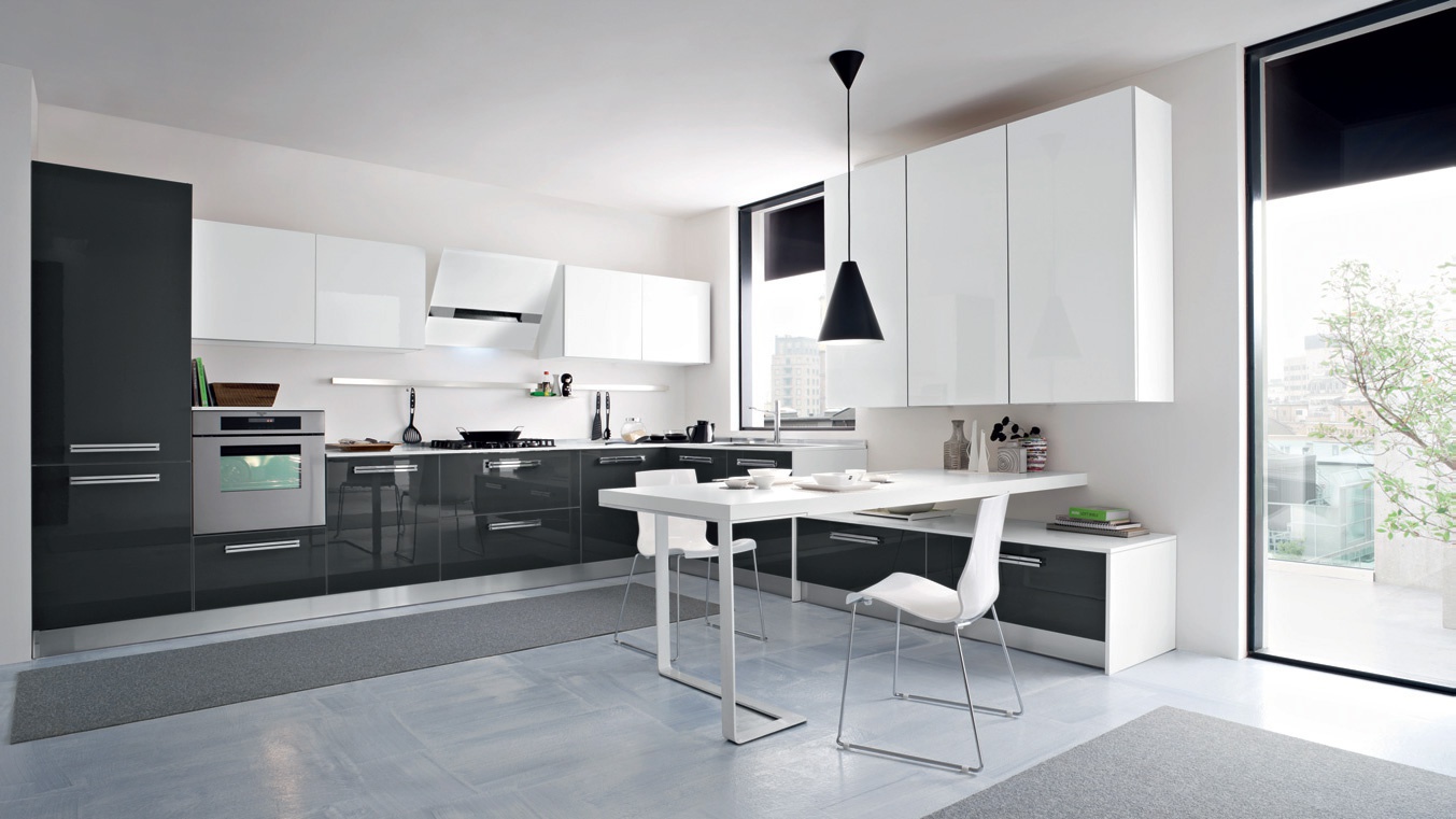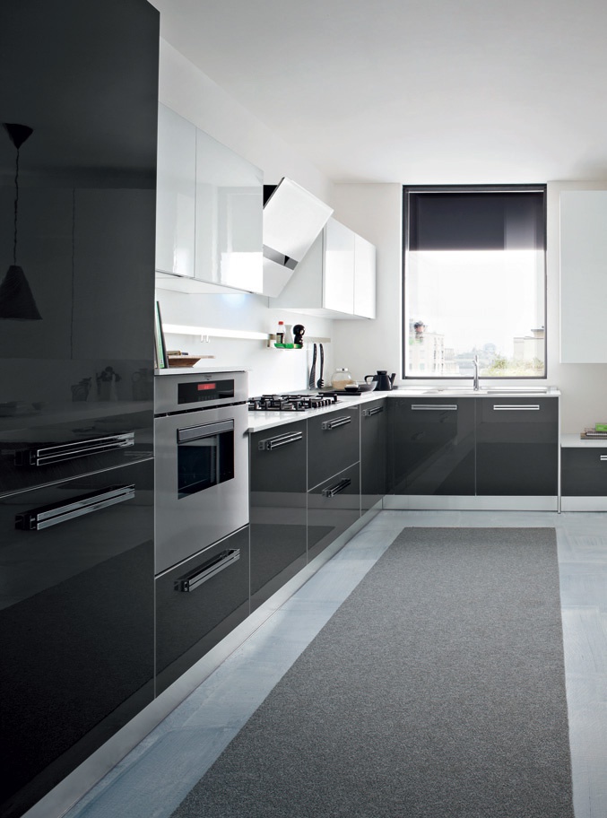 Kitchen Onda comp.3 from the Italian manufacturer Ar-Tre. The structure of the headset is made of water-repellent wood. Fronts made of MDF in high gloss lacquered finish, in combination in anthracite and white, plinth and handles are made of chrome steel. Countertop made of "corian" in white. Built-in appliances. Colors to choose from manufacturer's catalogue. Design and functionality is reflected in this cuisine, contains the latest trends of bold colors and high tech appliances. A modern solution for your kitchen.
