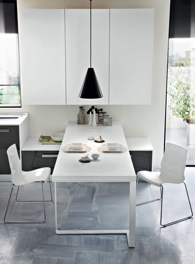 structure: wood facades: MDF accessories: chrome-plated steel countertop: corian facades: lacquered |