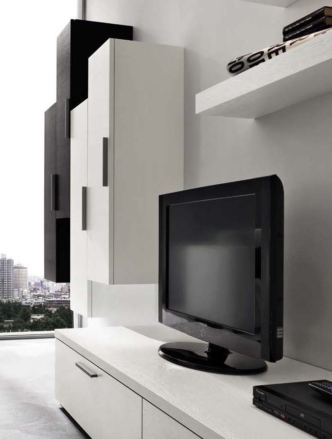 Forma modular system from Italian manufacturer Maronese. The model is made of wood. The system consists of four wall units, cabinets for TV and three shelves. The contrast of black and white cabinets make a design very original, which will look great in any interior.