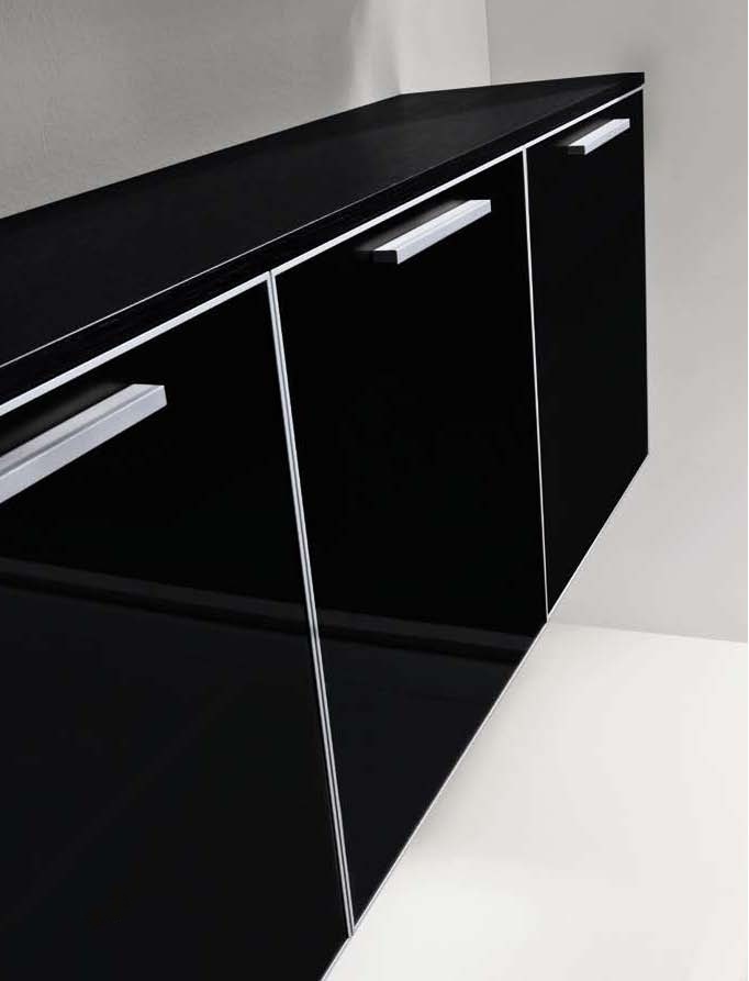 Forma modular system from Italian manufacturer Maronese. The model is made in modern style, made of wood. Colors white and black. The system consists of hinged lockers, closed shelves and cabinets. The Cabinet door is made of glass covered with black lacquer. The design was created for an elegant and modern interior.