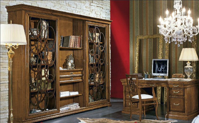 Shelving in classic style with two carved doors Armonie, Arve Style.