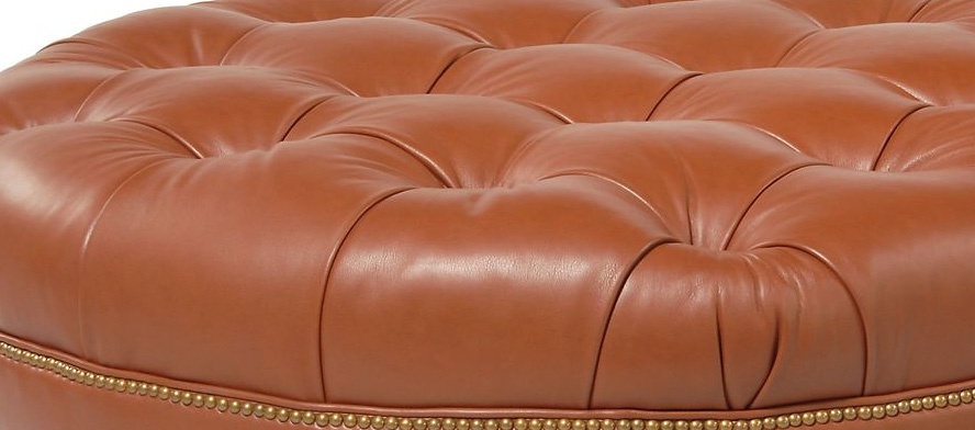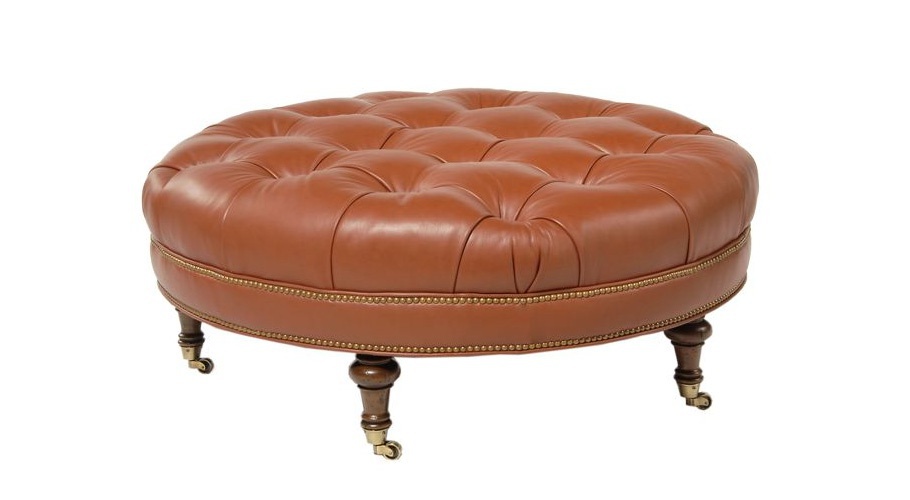 The Paula Ottoman-Tufted from the American manufacturer Pearson. The frame is made of wood, filler - polyurethane foam. The upholstery is made of leather. The model with wheels decorated with furniture nails. Color range is wide to choose from the range.