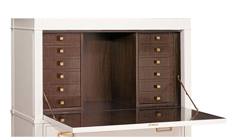 Secretaire Alice from the American manufacturer Hickory Chair. Is standard in Oxford finish and the accessories of gold brass. Model with folding door. Inside with drawers for storage. Base-the Base was designed for function with drawers. Classic design.