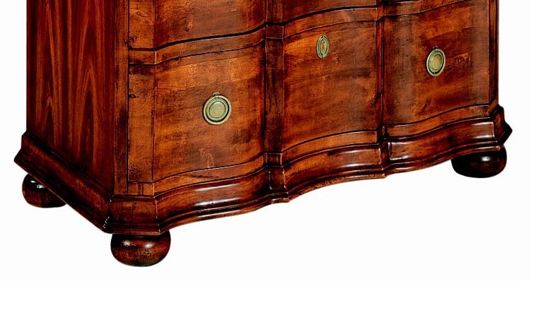 Small chest-Chest from the American manufacturer Hickory Chair. Figured marble top with shaped fronts cherry wood or veneer. Burnished brass hardware with multi-stage carved legs. Great interior decoration with dozens of finishes to choose from.