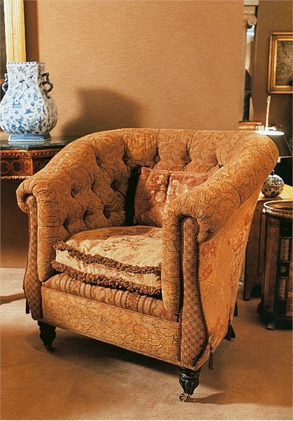 Chair Sherley from the Italian manufacturer Provasi. The frame is made from solid wood and the upholstery is presented in a textile form. The color of this chair model you can choose in the catalog of the manufacturer.
