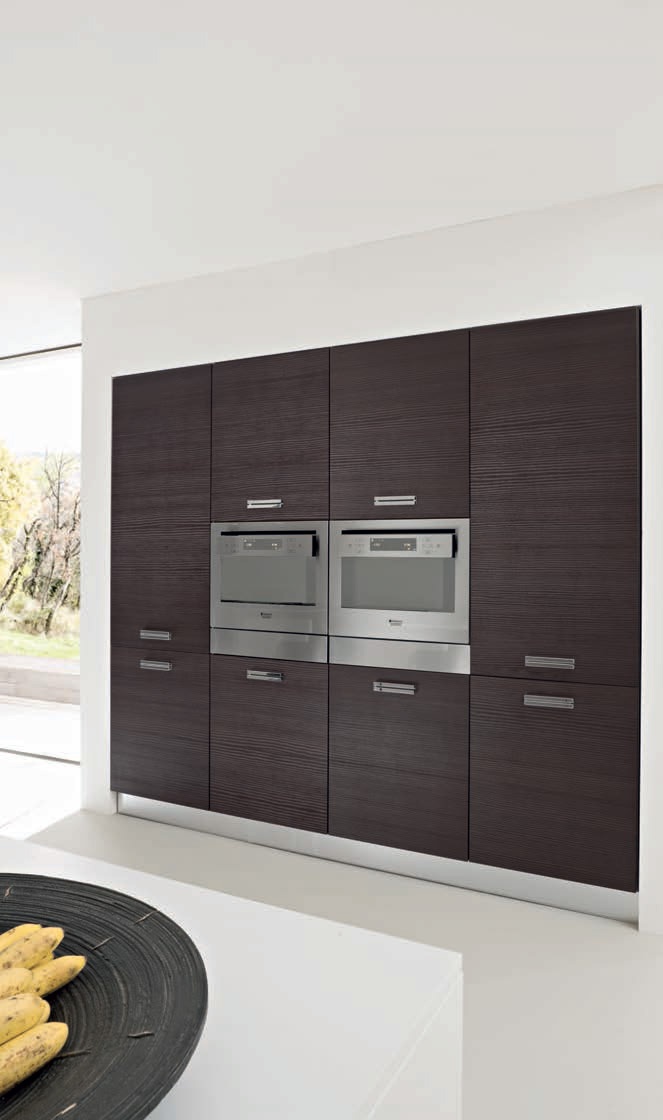 Kitchen Riga comp.5 from the Italian manufacturer Ar-Tre. The headset frame is made of waterproof wood. The facades made of wood with visible wood structure, plinth and handles are metal. Countertop made of artificial stone. Built-in appliances. Colors to choose from manufacturer's catalogue. Internal storage conceal technological features dishes that allow you to optimize space. Aesthetics and functionality are concentrated in this model. Kitchen designed in modern style.