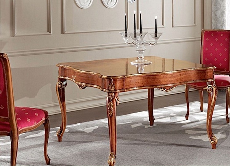 Mary dining table from Italian manufacturer Arve Style. The table is square. Frame, table top made of solid wood. Finish - wood veneer from valuable breeds. Decoration are figural legs, elegant carvings in silver patina, inlay table tops. Colors from the range. The table in the Baroque style, will fit perfectly in a dining room in classical style.