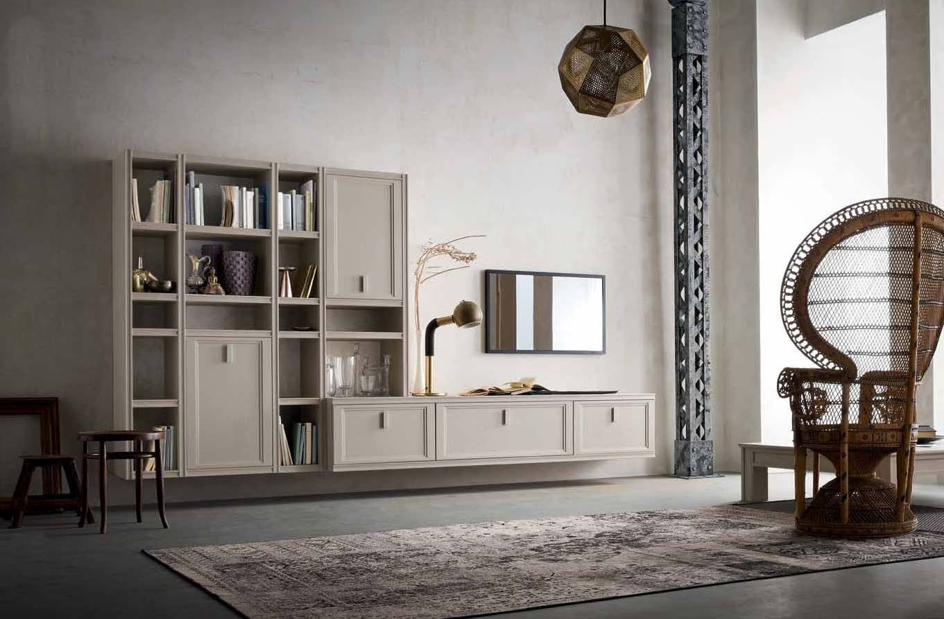 Iris modular system from Italian manufacturer Maronese. The model is made in modern style. The frame is made of wood. The system has cabinets, open compartments and shelves for books. Colours in stock. An excellent option to maintain order and comfort in Your living room.