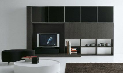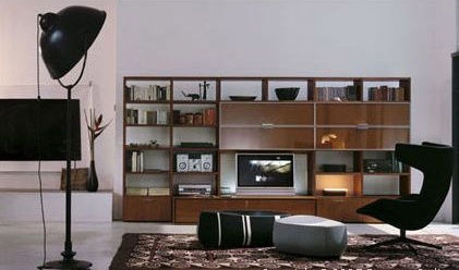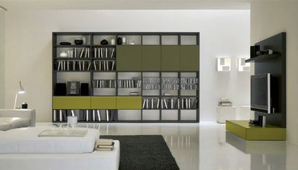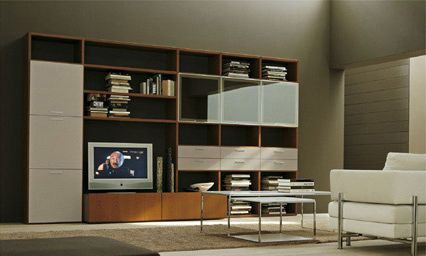Modular wall storage system, Pari e Dispari One - Presotto. Excellent model with open shelves. The body is covered with matte varnishing. The basis of the framework laid the wooden frame. The color of the products according to the catalog.
