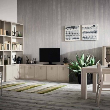 Iris modular system from Italian manufacturer Maronese. The model is made in modern style. Colours in stock. The frame is made of wood. The system has cabinets, shelves and open compartments and Cabinet. The perfect choice for the modern interior.