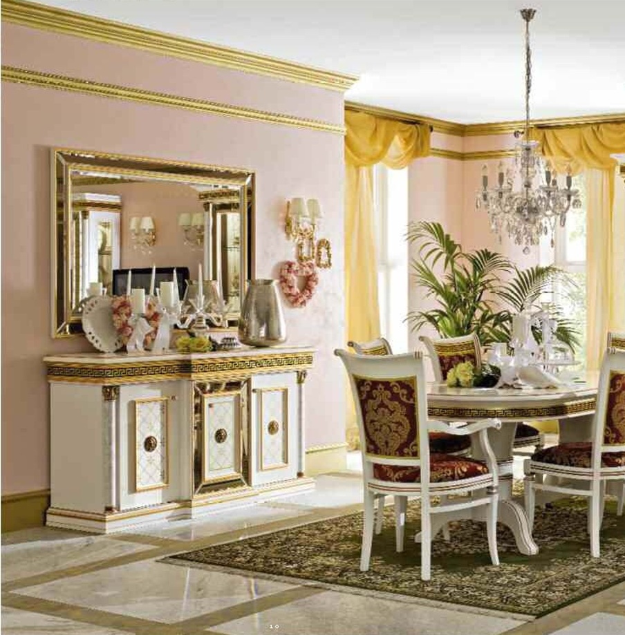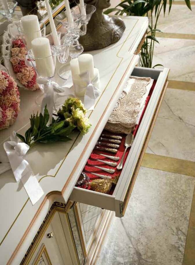 The Zeus sideboard from Italian manufacturer Maronese. The model is executed in classical Greek style. Frame - wood. Finish gilding. The sideboard has three doors and one drawer. The model will allow You to have nearby all the necessary items and create a comfortable environment in Your dining room.