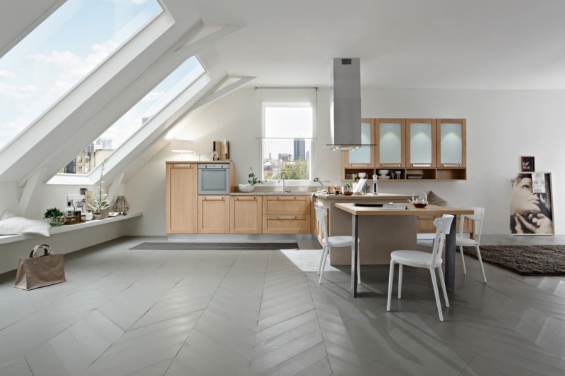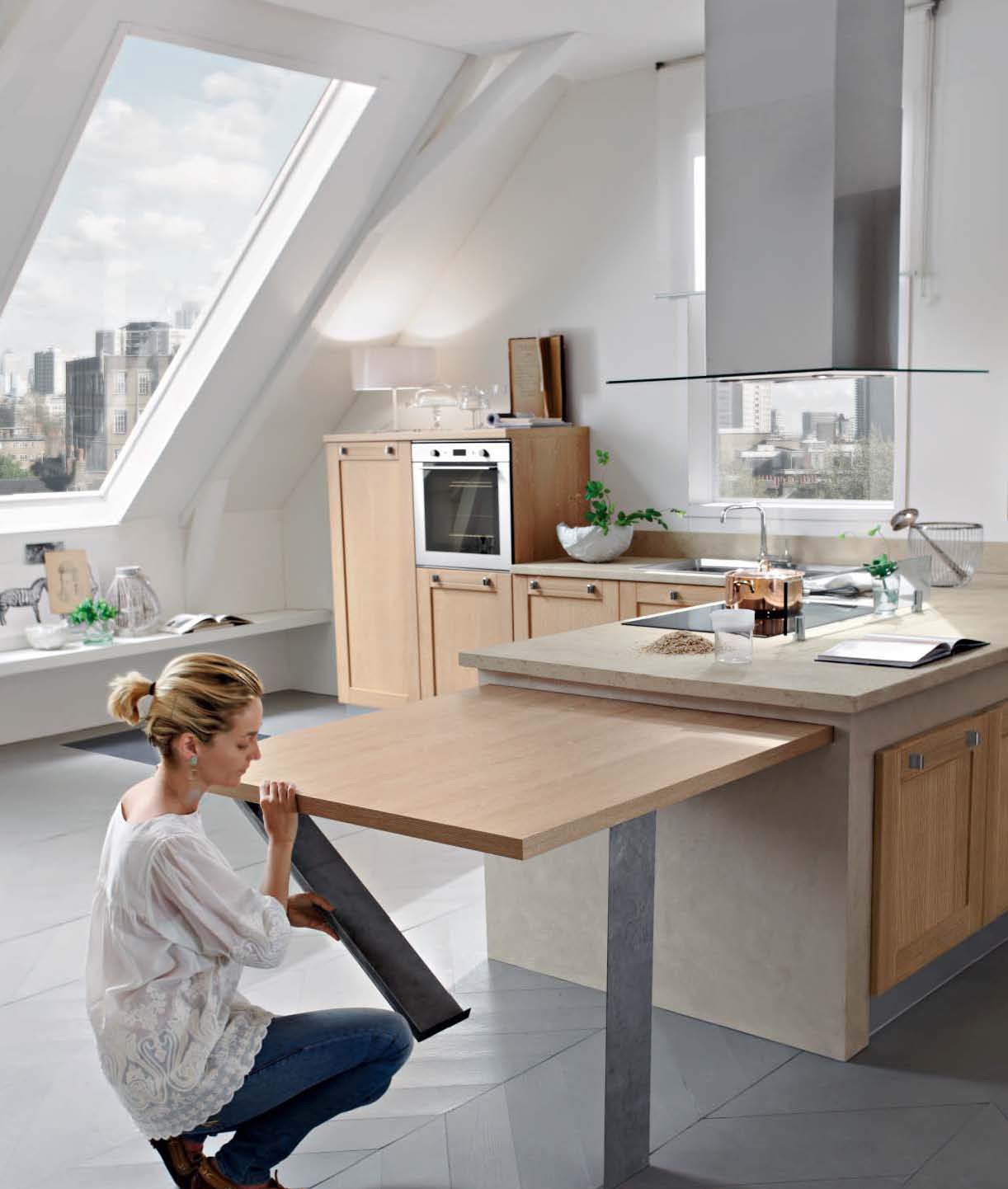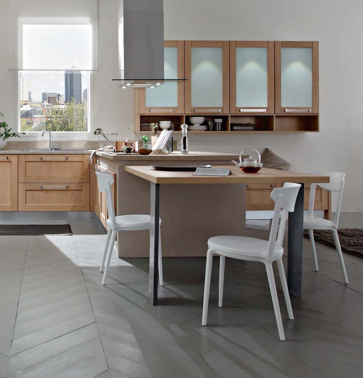Kitchen Vanessa comp.2 from the Italian manufacturer Ar-Tre. The structure of the headset is made of water-repellent wood. The facades bleached oak and frosted glass accessories chrome-plated steel. Countertop made of artificial stone and wood. Built-in appliances. Colors to choose from manufacturer's catalogue. Functional solution in this model is shown with an extendable dining table from the Peninsula that allows efficient use of space. Versatile solution for your kitchen in a modern style.