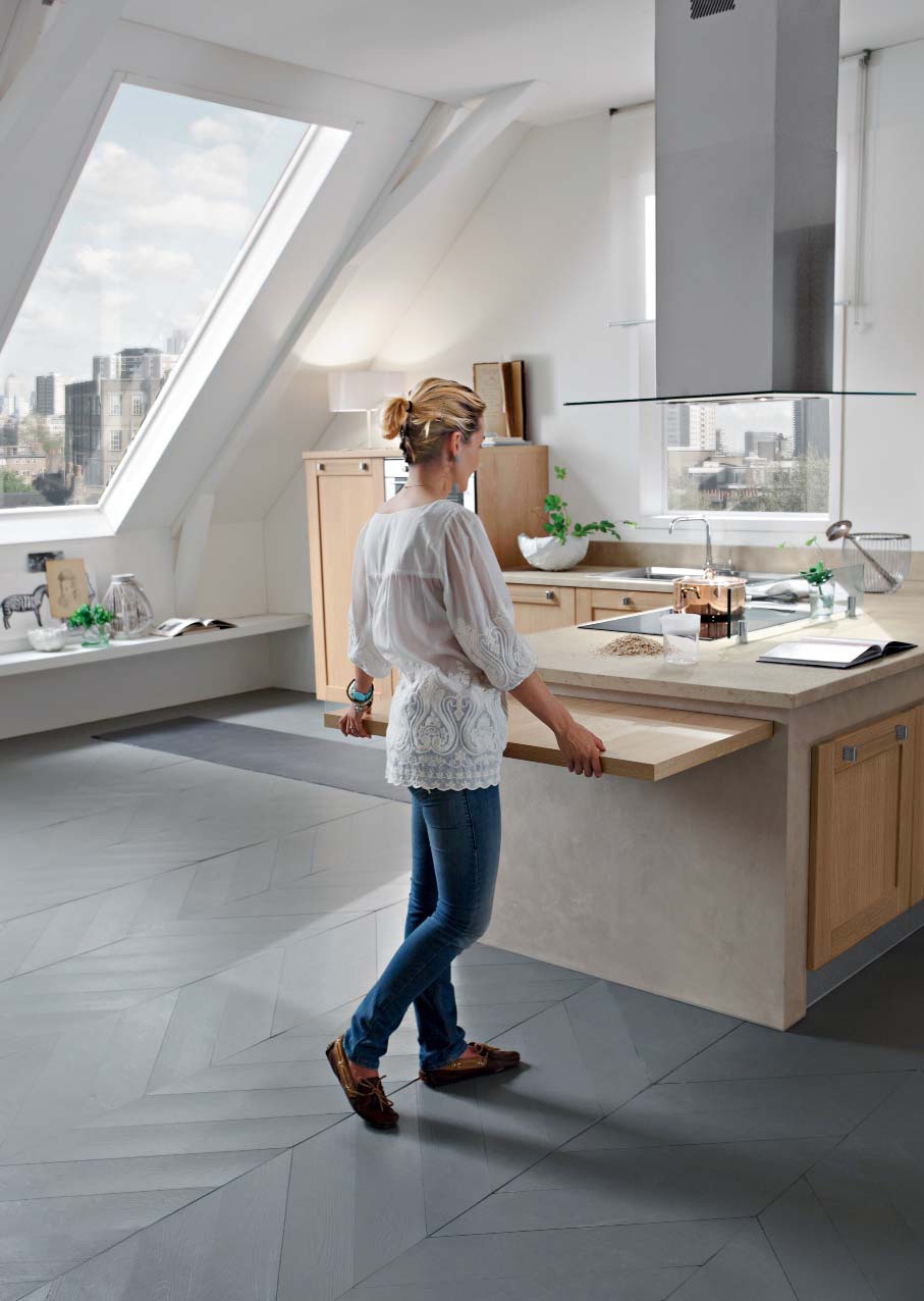 structure: wood facades: oak facades: Satinato (matte) countertop: artificial stone accessories: chrome-plated steel facades: bleached |