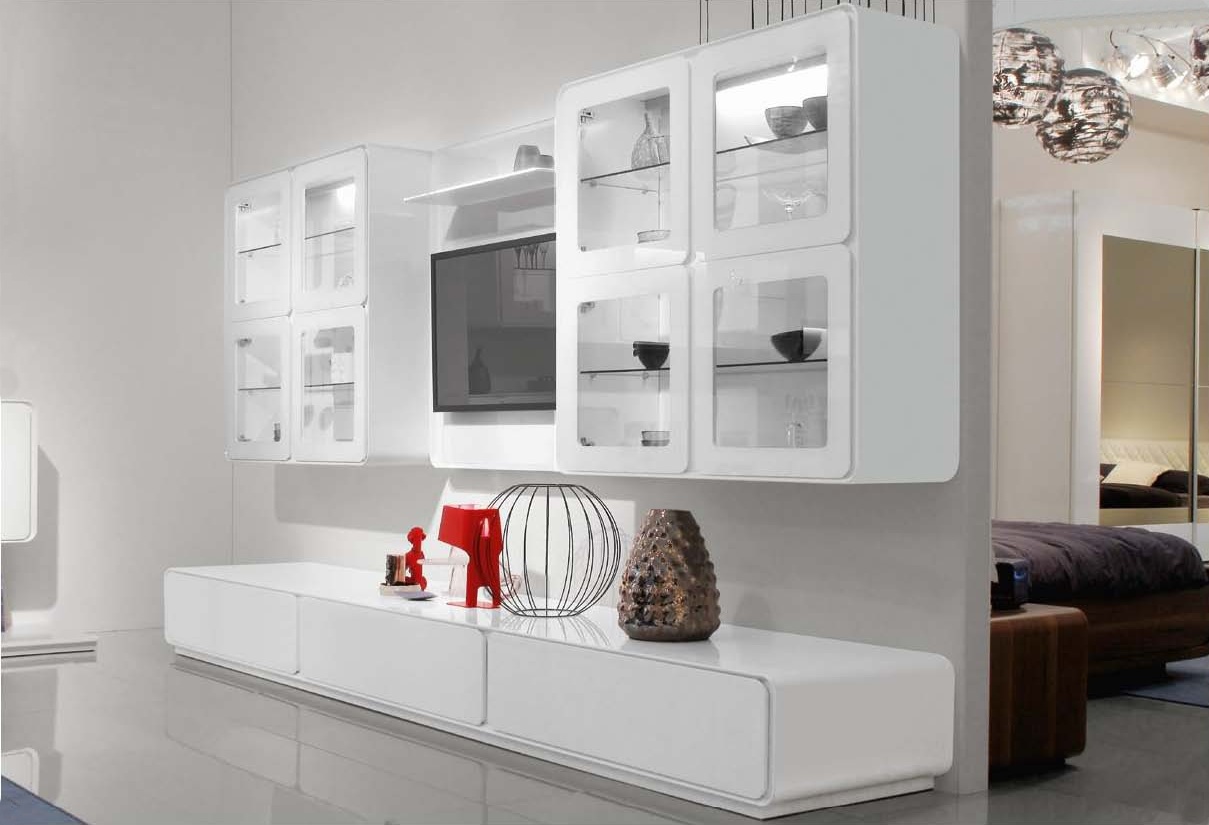 Living room (sofa set) from the Italian Settanta Maronese manufacturer. The frame is made of wood. Set consists of two hinged Windows, cabinets, and panels for TV. Colours in stock. Can be equipped with internal lighting. The composition is made in a modern style. This perfect set will adorn Your interior.