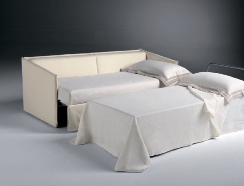 Double sofa-transformer Slim presents Italian factory Loiudiced - simple and elegant sofa bed. The filling of the sofa is polyurethane foam and special acrylic fiber. Backrest and armrests upholstered. Lightweight frame construction gives the sofa an elegant look. The model has a pull-out sleeper mechanism on a metal frame. A great choice for small space kids room or teen room
