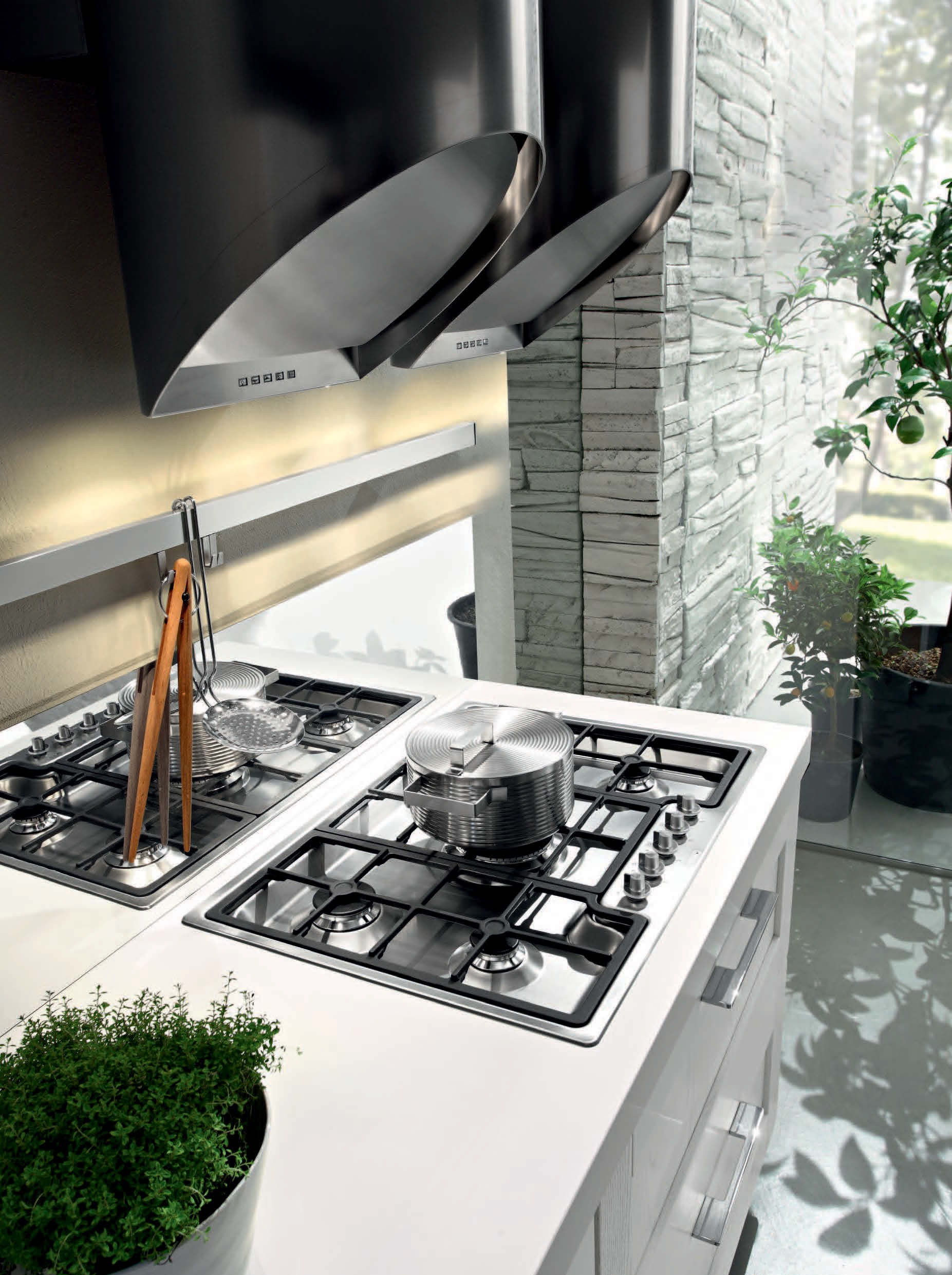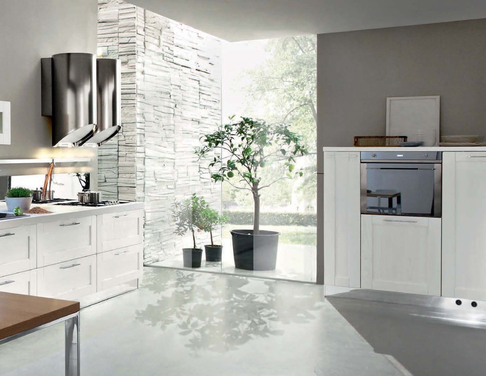 Kitchen Signoressa comp.3 from the Italian manufacturer Ar-Tre. The structure of the headset is made of water-repellent wood. The facades, in the finishing of lacquered white with visible wood structure, furniture made of chrome plated steel. Countertop made of artificial stone. Built-in appliances. Colors to choose from manufacturer's catalogue. Large storage space, practicality, a focus on aesthetic appeal - all this is concentrated in this model. Universal design solution in the organization of space was sent to make the kitchen a place where you can eat, cook and watch TV. Kitchen designed in modern style.