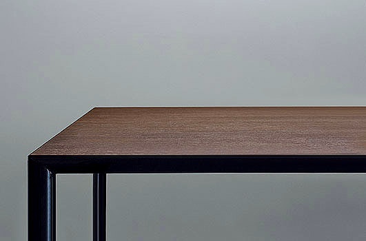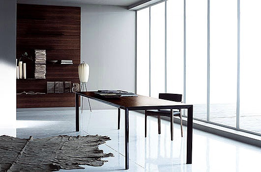 Ram dining table from Italian manufacturer Porro. The table on a steel frame, varnished black or white. The top is a natural oak or black glass, painted white or black. The design is attractive for its ease.