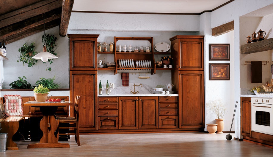 Kitchen (kitchen set) Michela Italian manufacturer of Arrex le cucine. The classic kitchen model will decorate any interior in the Provence style. Finishing cherry veneer. Use fittings of brass. The facades of frosted glass in a wooden frame in two versions.