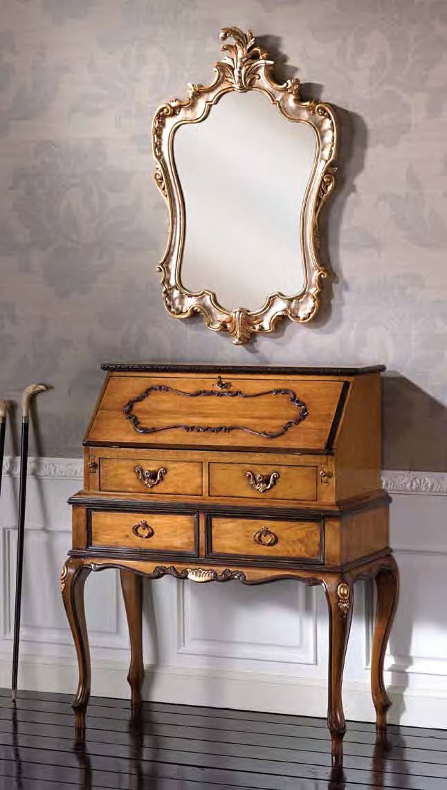 Secretaire Adam from the Italian manufacturer Arve Style. The product is high figured legs, fitted with door, drawers. Frame, base made from solid wood. Finish - wood veneer from valuable breeds of a tree. Accessories metal. The decor is elegant carvings. The finishing - varnish. Colors from the range. The product in the Baroque style, will be the highlight in modern interior and bright element - classic.