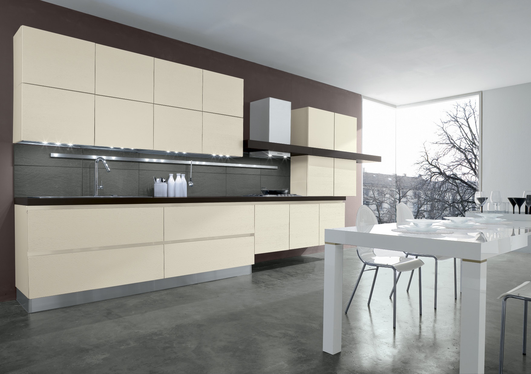 Kitchen Iride comp.2 from the Italian manufacturer Ar-Tre. The headset frame is made of waterproof wood. The facades in beige color with open pore wenge, fitments chrome-plated steel. The table top is made of quartzite. Built-in appliances. Colors to choose from manufacturer's catalogue. This model has a necessary set of furniture elements, but it is completely functional and aesthetically pleasing to the eye. The perfect solution for your kitchen in a modern style.