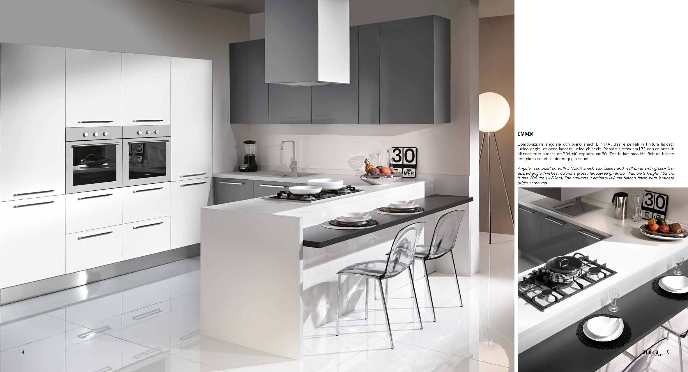 Kitchen (kitchen set) Etnika DM 0123 from the Italian manufacturer Imab Group in a modern style. Perfectly arranged kitchen seamlessly merges the living space with Peninsula counter. High column cabinets recessed into the wall, attach all the functionality of the kitchen and provide a great opportunity for storage.