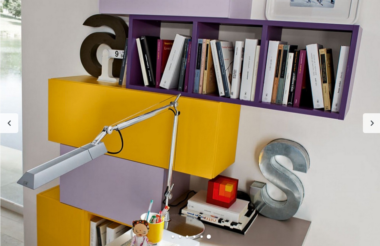 Children's room (Suite for children) Tag 12-03 from the Italian manufacturer Siloma in a modern style. The original course was that are hanging items in a chaotic layout and color scheme. Wide choice of size and color number in the catalog of the manufacturer.