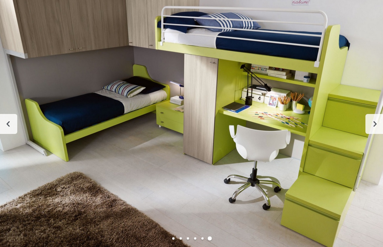 Children's room (Suite for children) 12-09 Tag from the Italian manufacturer Siloma in a modern style. The kit includes two children's beds, Desk, wall cabinets, a spacious wardrobe. The successful combination of bright colors and veneer.