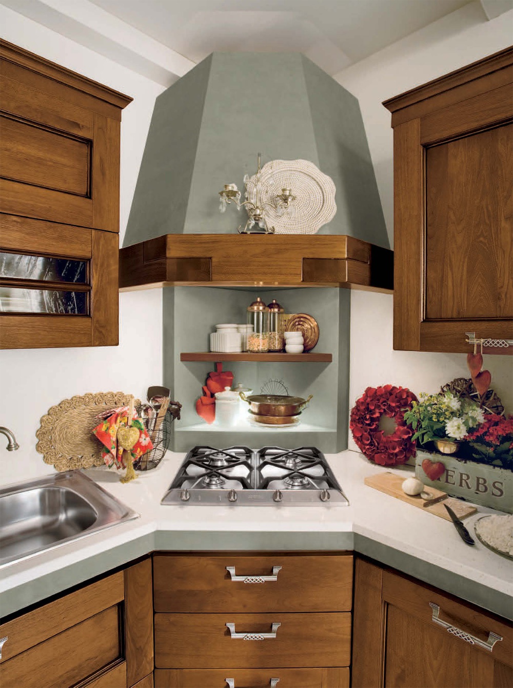 Kitchen Alba comp.6 from the Italian manufacturer Ar-Tre. The structure of the kitchen made of waterproof wood. Fronts made of solid walnut and stained glass, pen of aged steel. Countertop made of artificial stone. Colors to choose from manufacturer's catalogue. The strong character of this composition reflects the tradition and needs of modern life. Special items, decorative ornaments on the tree and glass, a harmonious combination of original solutions and are the characteristics of this cuisine.