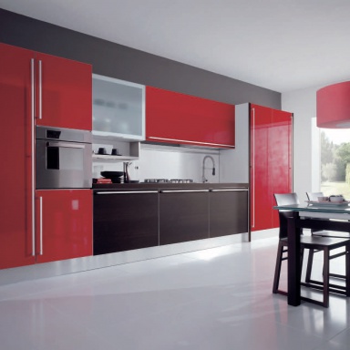 Kitchen (kitchen set) Miro Colours from the Italian manufacturer Aran Cucine. The case is MDF wood. Accessories chrome steel. Finish lacquered. Table Of Diana. The model is made in modern style. Colours in stock.