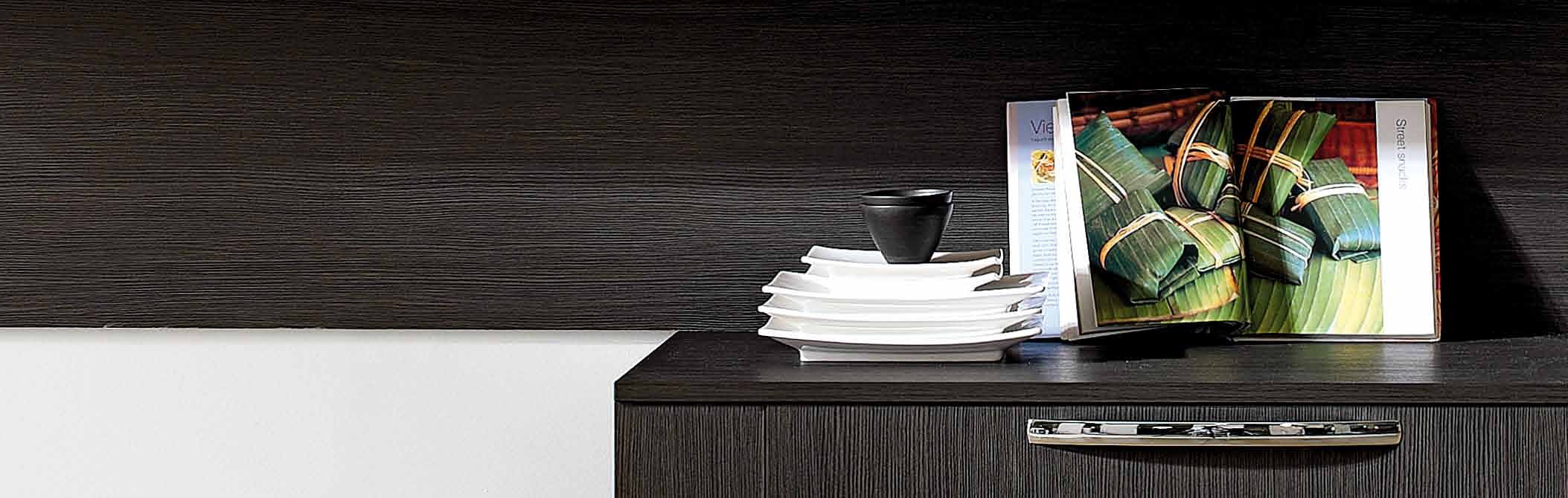 Open elements presented in the color white glossy, larch, graphite and dark larch. The model is made in modern style.