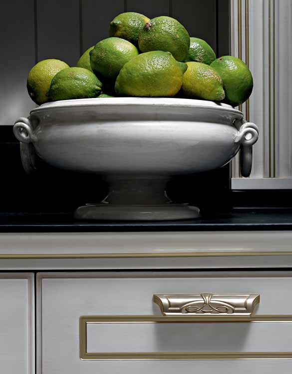 Kitchen (kitchen set) from Imperial Italian manufacturer Aran Cucine. The case is natural wood. Finish lacquered anthracite with silver decoration. The model is made in classic style. Colours in stock.