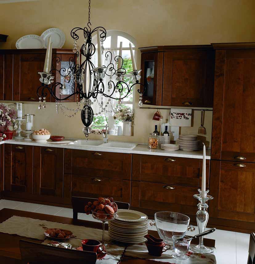 Kitchen (kitchen set) Panera from the Italian manufacturer Aran Cucine. The case is natural wood. Finish lacquered. Handles are metal. The model will perfectly complement the classic interior of the kitchen.