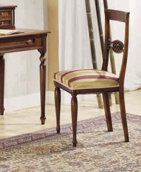 Medea chair from the Italian manufacturer Arve Style. Frame, base made from solid wood. Surface in glossy lacquer from the range. Upholstery is the textile according to the manufacturer's catalogue. Decoration is the carved decoration of the back. Design with elements of classic, beautiful choice for classic and contemporary interiors.