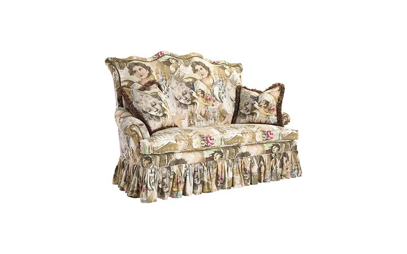 Sofa D'artagnan from the American manufacturer French Heritage. The frame and legs are made of wood, upholstery - textiles from the company portfolio. The base is hidden a decorative "skirt". Filler - polyurethane foam. The model is equipped with decorative pillows. Color of the product catalog of the manufacturer.