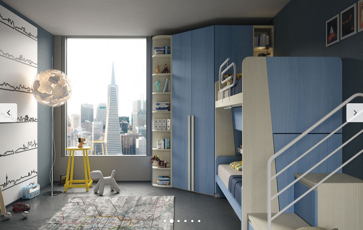 Children's room (Suite for children) Tag 14-08 from the Italian manufacturer Siloma in a modern style. In this model a version of the layout for two infant boys. Ergonomic bunk bed, corner Cabinet, pull-out desktop. Finish Your choice in stock.