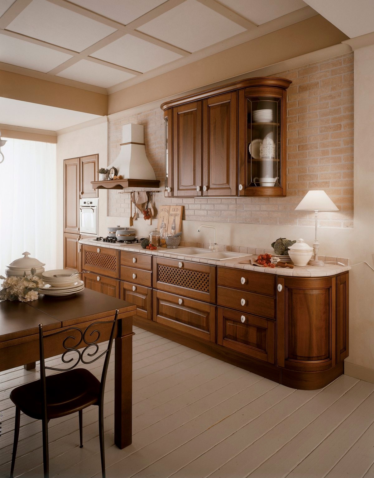 Kitchen (kitchen set) Taylor from the Italian manufacturer Aran Cucine. The model has a distinctive charm and hospitality. The interior of the kitchen is perfect, created the atmosphere of comfort. Taylor is available in finishes walnut or cherry, and combines its classic design with modern functionality and technology, with attention to detail and a capacious element, creating a mood full of charm and warmth.