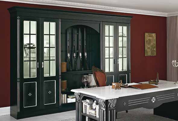 Modular system, wall Unique from the Italian manufacturer Aran Cucine. The body is made of ash in the brush color finish brown nut, carving, artistic decorations of silver, the surface gloss of the Imperial Carrara marble, the arabesque pen of silver or nerzaveushsei steel, outdoor module "library".