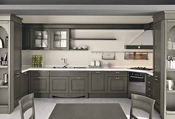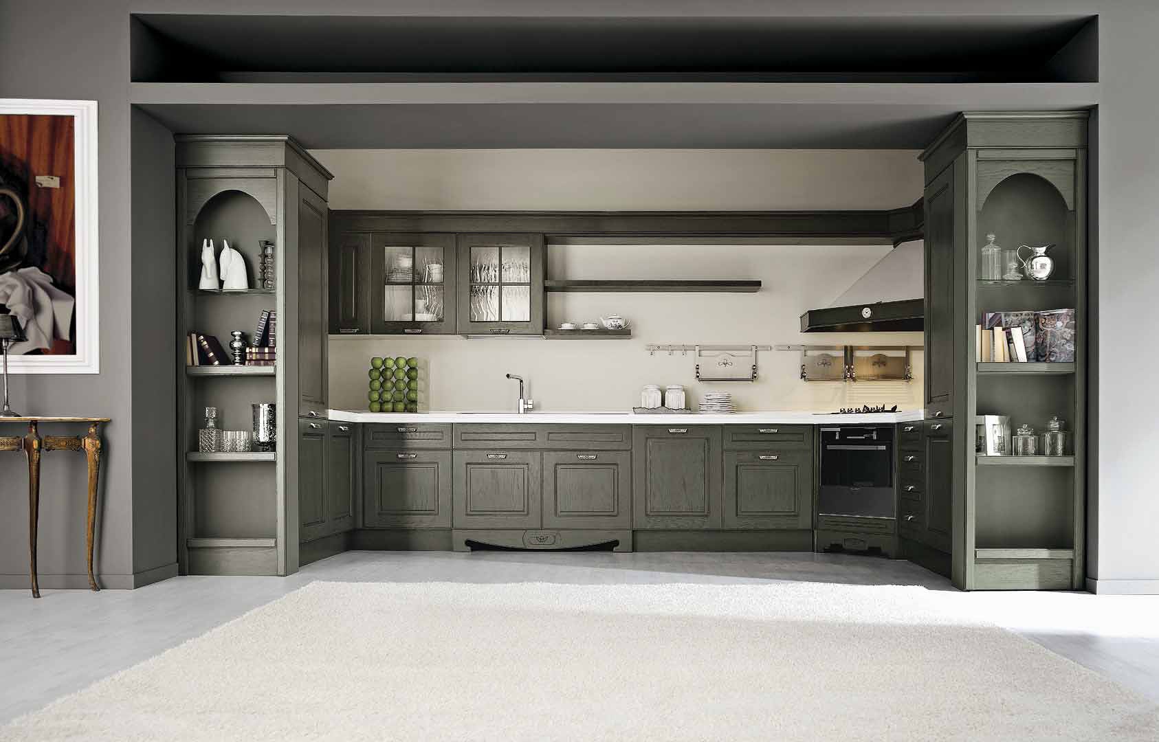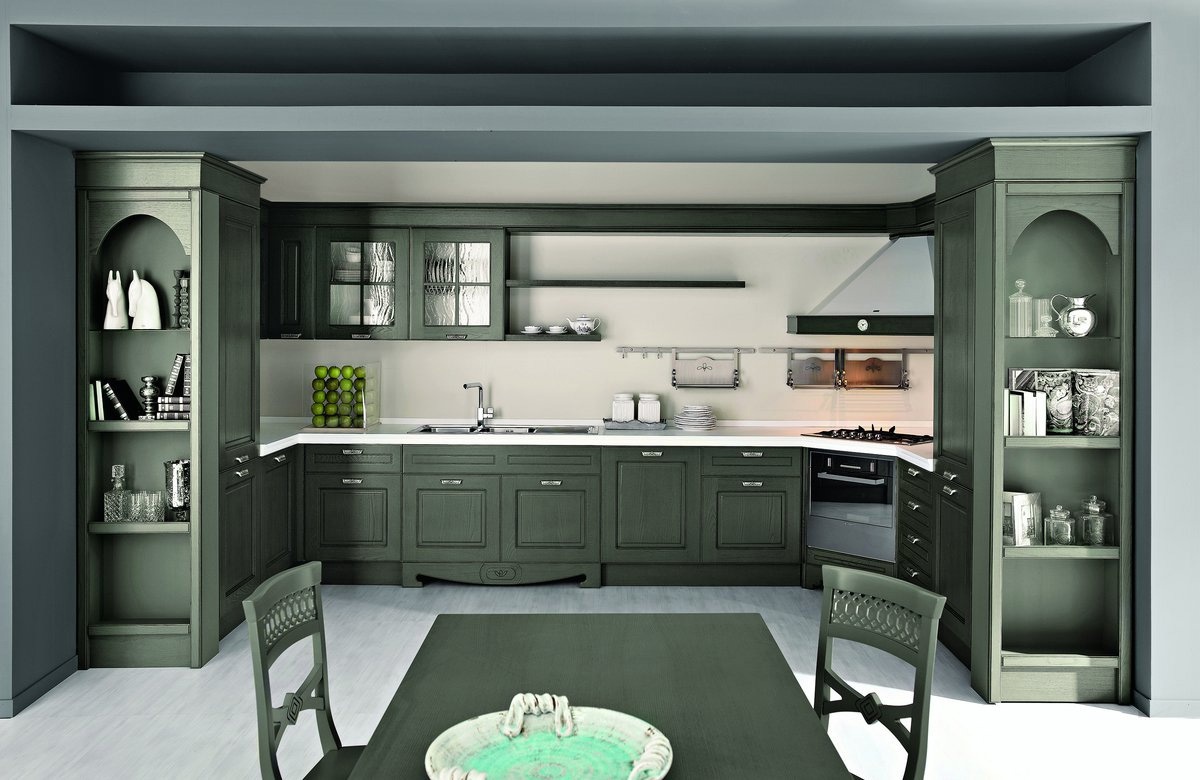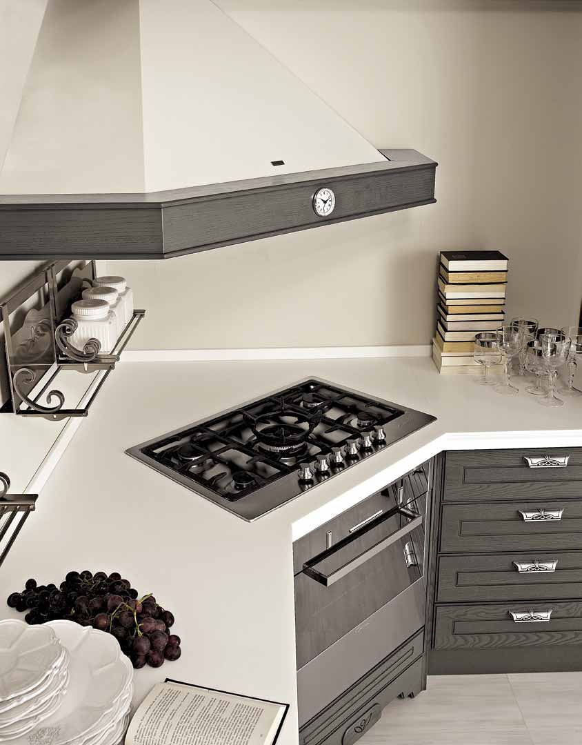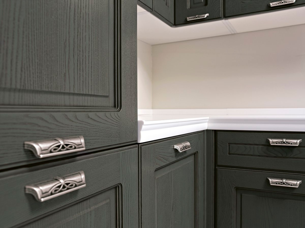 Kitchen (kitchen set) Charme from the Italian manufacturer Aran Cucine. Decipheronly ash body in brush finish. Countertop Syntetic, Imperial profile, handle Arabesque antique silver. The model is made in classic style.
