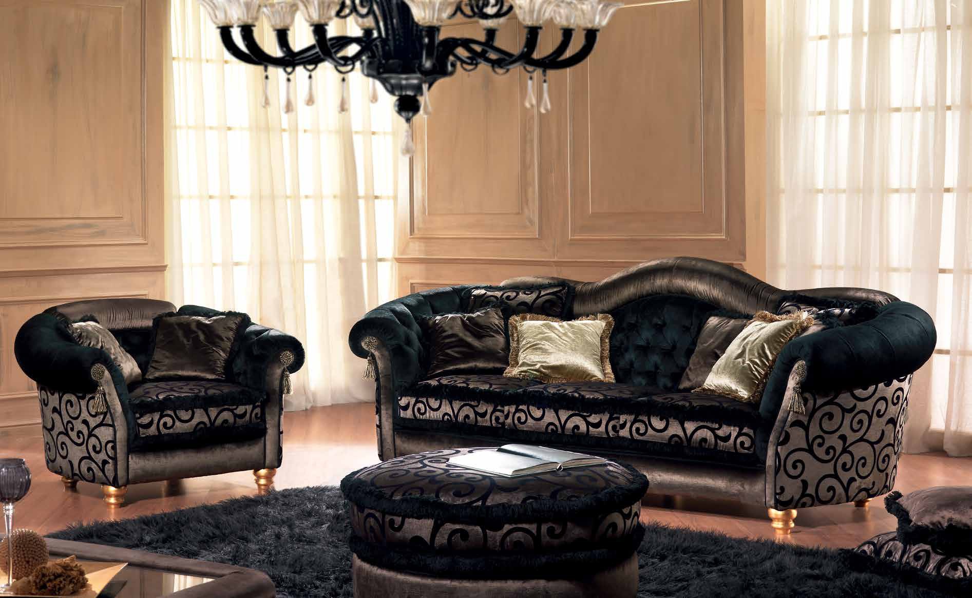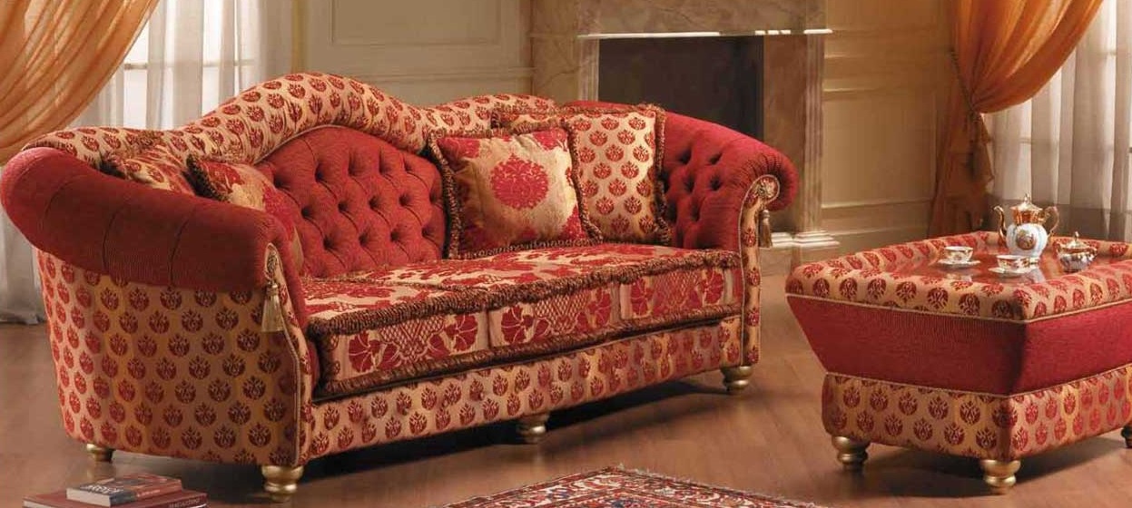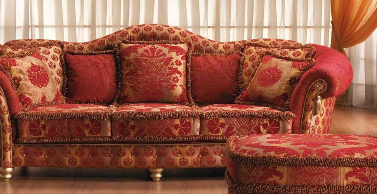 Triple Calypso sofa from Italian manufacturer SAT Export. The frame is natural wood. Upholstery - textiles. Filler foam. Decorative elements thread of manual work. The model is made in classic style. Colours in stock.
