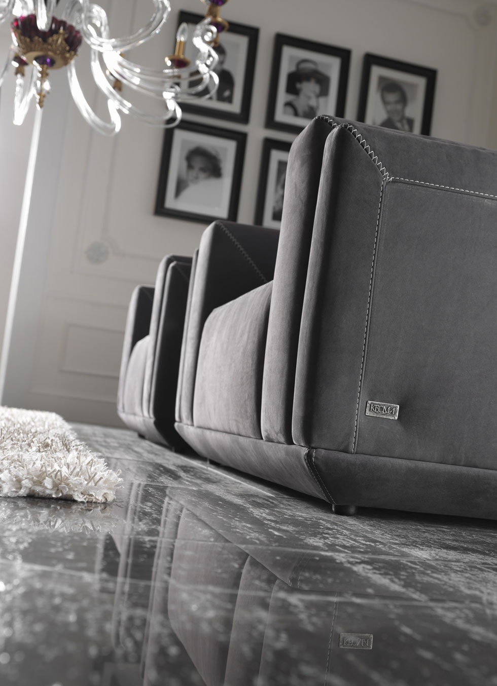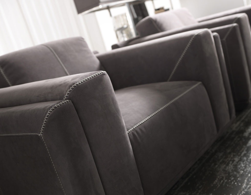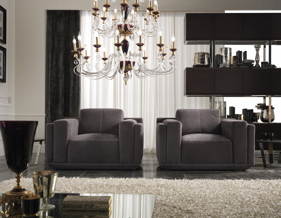 Sofa set Leonardo Italian manufacturer Keoma Salotti. Presents models of chairs and double sofa. The furniture is made on a frame of poplar. The finishing of leather, the variant in textiles. Color scheme in white and brown tones.