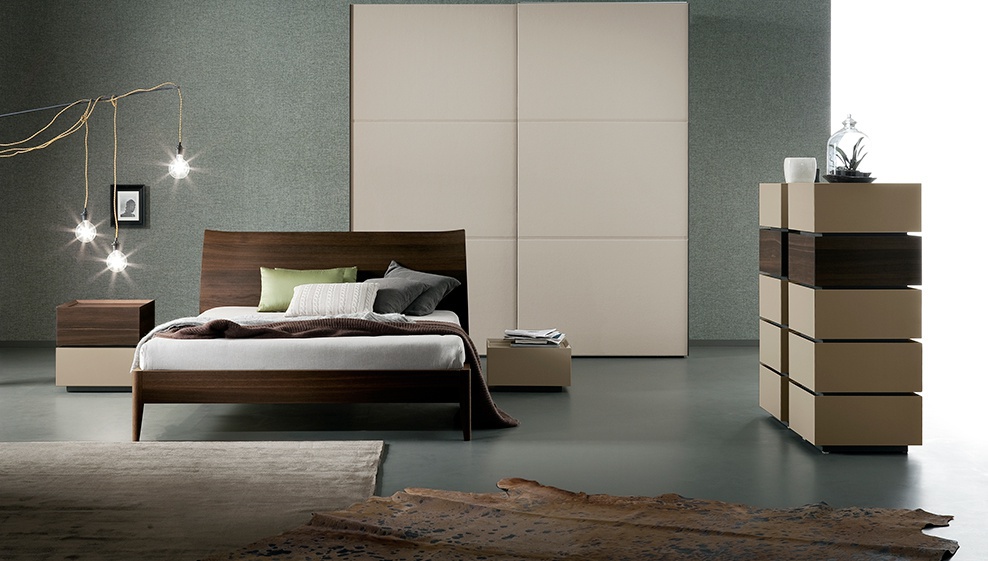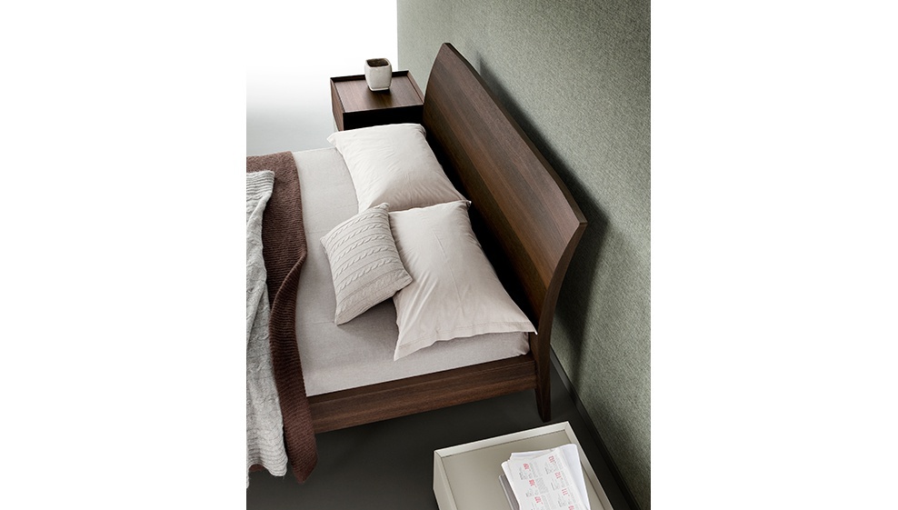 Double Divine bed from Italian furniture manufacturer Rossetto Armobil. Simple and very elegant version of the double beds. Fully wooden frame, natural wood colours and nice texture of the surfaces create a sense of comfort. The manufacturer offers a choice of several finishes: natural walnut veneer, imitation oak veneer, lacquer open pore