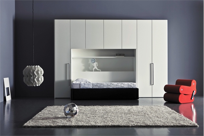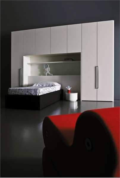 Children Mia from the Italian manufacturer Pianca. Set for teen rooms. Provided the model for sleeping, shelves, work area. Can be used for rooms of twin type. Color in red the ton.