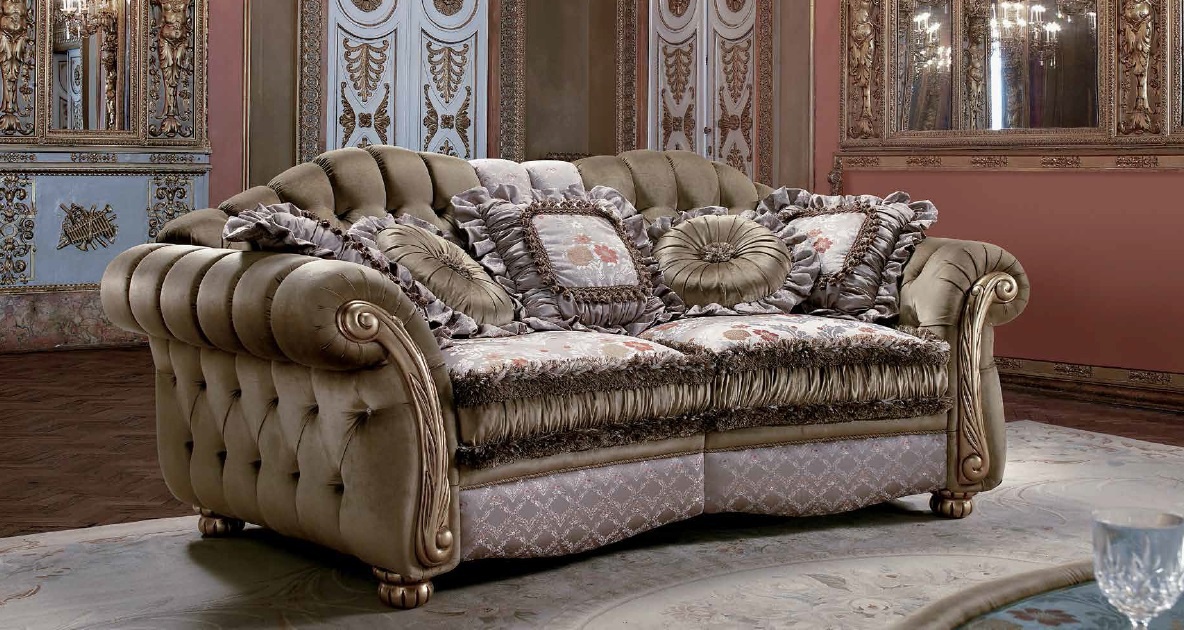 Double sofa Vanity from Italian manufacturer SAT Export. The frame is natural wood. Upholstery - textiles. Filler foam. The model will perfectly complement the classic interior of the living room. Colours in stock.