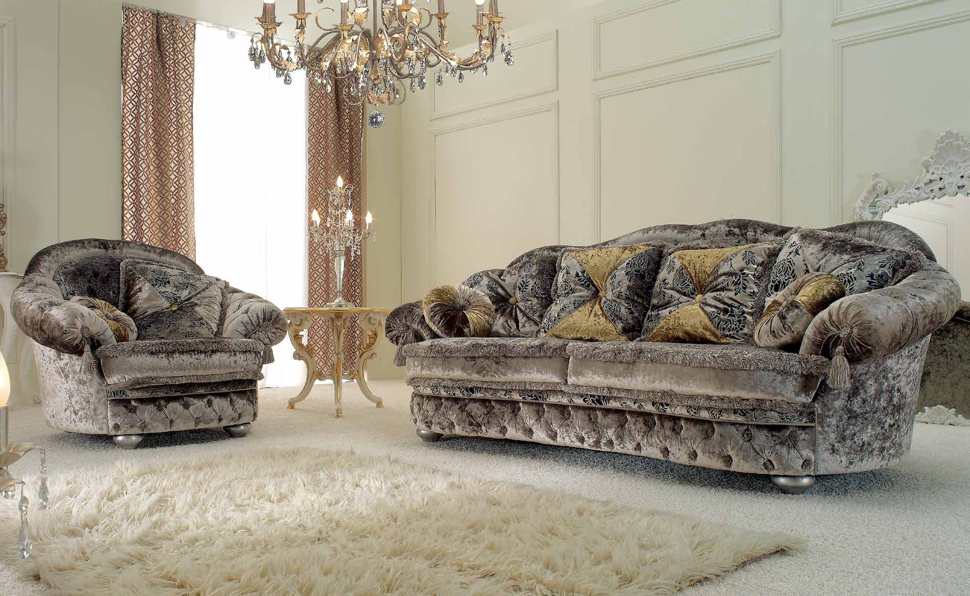 Vittoria double sofa from Italian manufacturer SAT Export. The frame is natural wood. Upholstery - textiles. Filler foam. The model is made in classic style, combines tradition and design. Colours in stock.