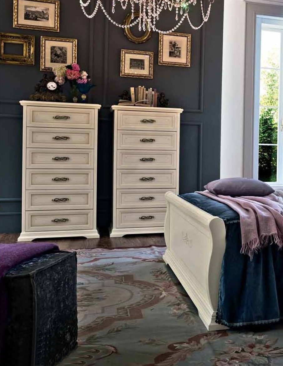 Afrodita high chest of drawers from Italian manufacturer Maronese. The model is made in classic style. The frame is made of wood. Colors in the catalog. The elegant dresser has six drawers. Original handle design makes the model tender and easily fit into any interior.