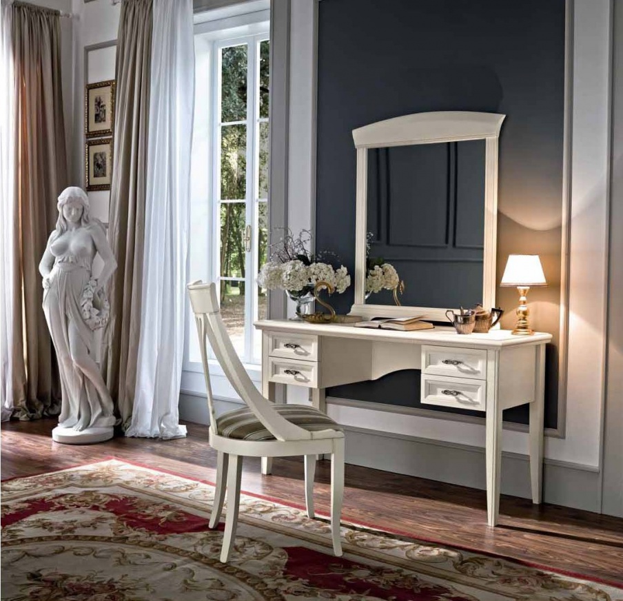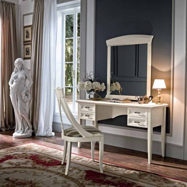 Afrodita dressing table from the Italian manufacturer Maronese. Table executed in classical style and has four drawers. The frame is made of wood. Colours in stock. Afrodita dressing table will be a welcome addition to Your bedroom.