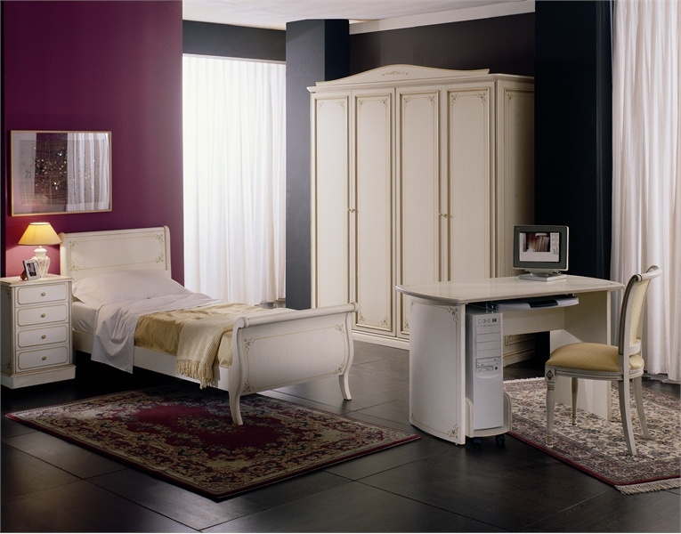 Three-closet Armadio Pilar from the Italian manufacturer Pellegattta. The number of sections and the composition on customer request size is a multiple of sections. The frame is made from tamburino, plate with honeycomb on the basis of solid spruce. The socle and facades from the array Ramin,ramin is a rare tree species of South-East Asia. Wood manually painted in any color from the catalog company. Only hand finishing carved and painted in the technique of miniatures. For painting is tempera (6-8 colors), a picture from a catalog or based on the customer's sketch. The surface is covered with a substance, which protects it from scratches and damages. Decorative accessories - metal. The series includes single bed, prikrovatnaya dresser, a computer Desk, a chair of similar design.