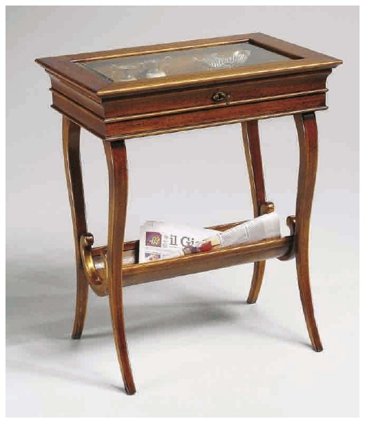 Showcase Eleonora from the Italian manufacturer Arve Style. Showcase with hinged lid made of glass with wooden frame, equipped with a lock. Frame, base made from solid wood, finished with veneer of valuable species. Decor are graceful legs, figured shelf. Product in a classic style, perfectly fit into traditional and modern interiors living room.