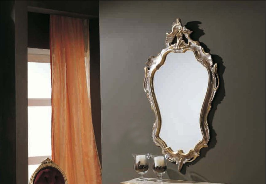 Mirror 700 from the Italian manufacturer Arve Style. The frame is made of solid wood. The surface is plated with silver. The decor is rich carving handmade. The product with elements of Baroque. The product will fill the interior with glamour and richness.