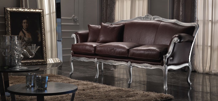 Presents Sissi Italian sofa manufacturer Keoma Salotti. Furniture on a frame of beech wood, decorated with a manual carving. The upholstery leather. Color in brown tone. The modern solution in the combination of silver and brown. A modern solution for living room interior in classic style.